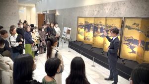 また、院展作品を対話を交えて巡る観賞ツアーなるものもありました。院展作家の山口貴士先生がファシリテーターとなり、参加者の皆さまが会場内の作品について自由に意見や感想を交換し、話し合いながら自分の考えを深めてもらうという試みで、とても新鮮に感じました。